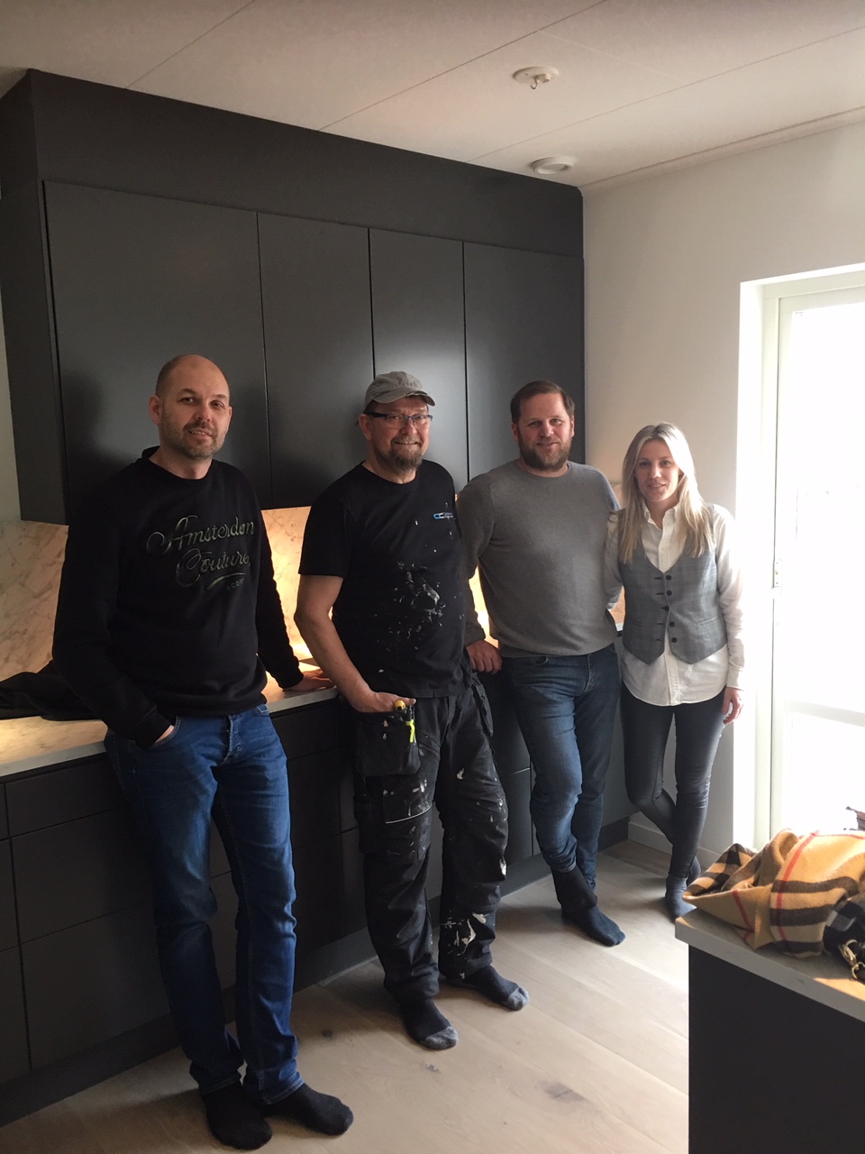Besiktningen gick kanon och till vänster om paret har vi entreprenören Carlskrona Construction och LB-Hus Byggledare Ola. Tack till alla och stort lycka till!